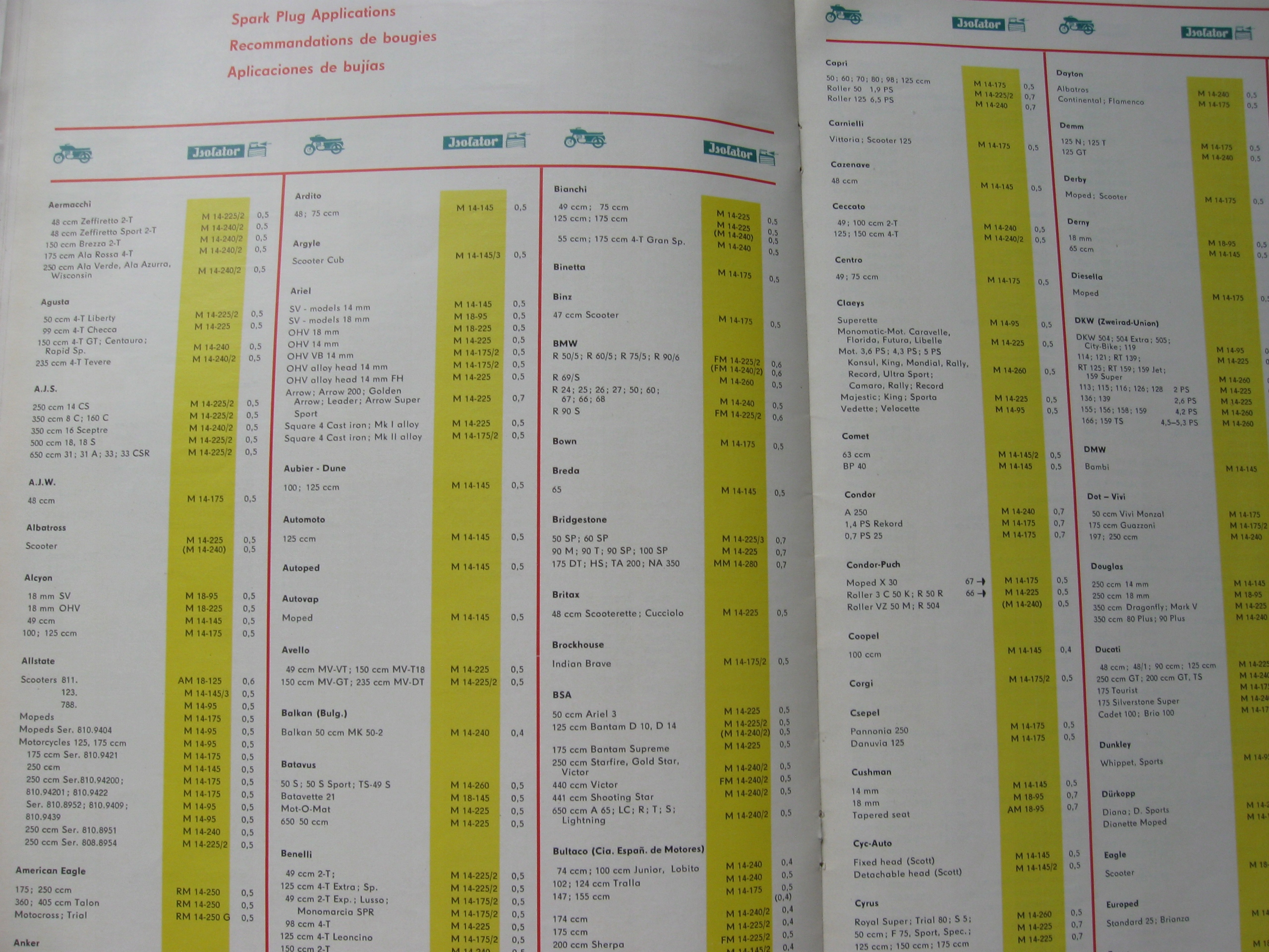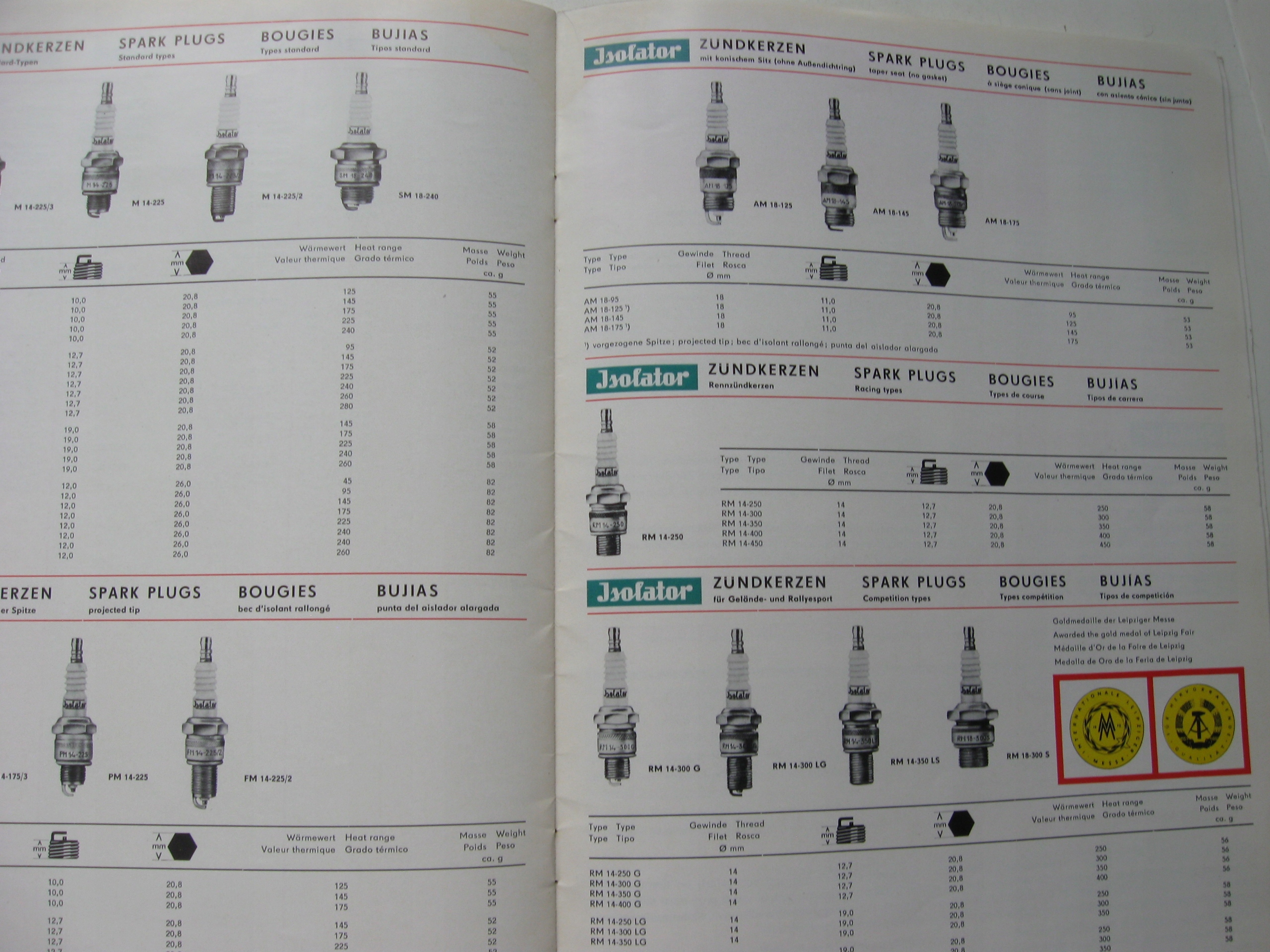 ISOLATOR KWH Zundkerzen - Свічки запалювання автомобілі мотоцикли КАТАЛОГ 1974