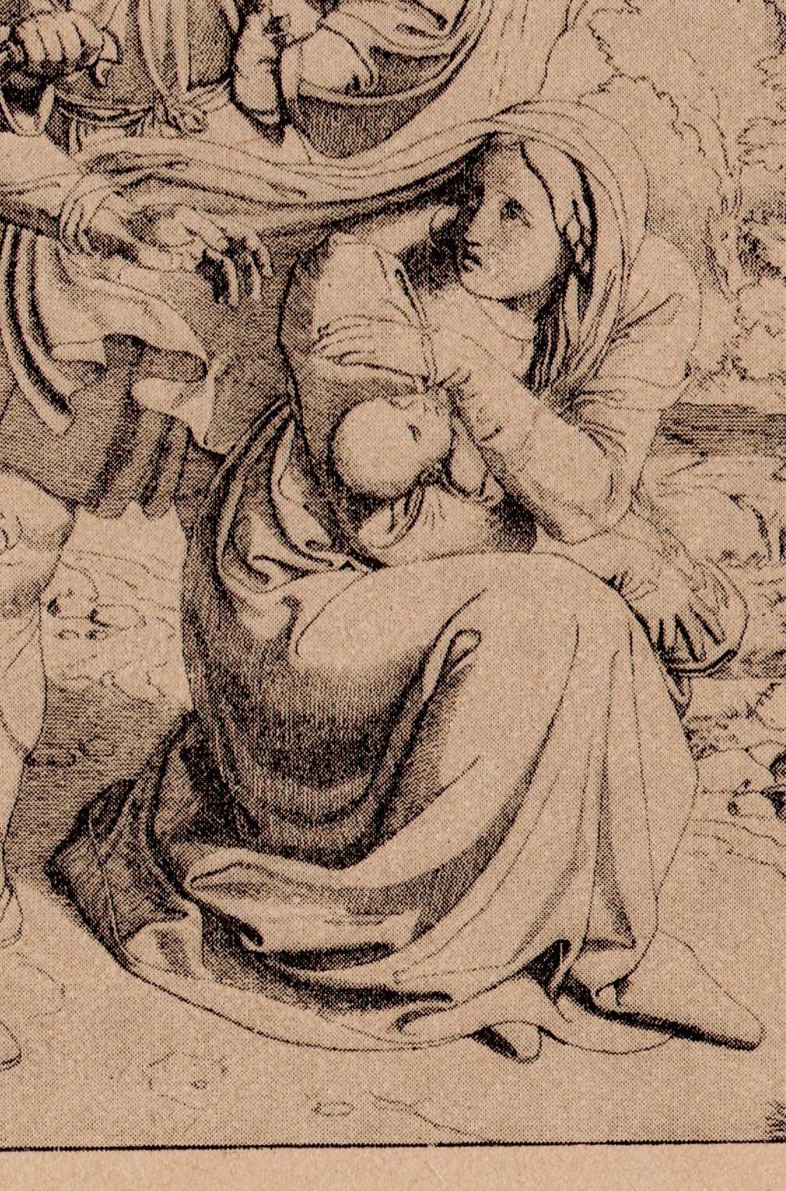 Походження та датування пропонованої гравюри : гравюра походить з видання - Joseph von Führichs. Релігійне мистецтво. Herausgegeben mit einer Einführung von Paul Ferdinand Schmidt. Furche-Verlag Berlin 1920 і представляє мотив із відомої легенди про герцогиню Женев'єву Брабантську та її чоловіка Зігфріда.