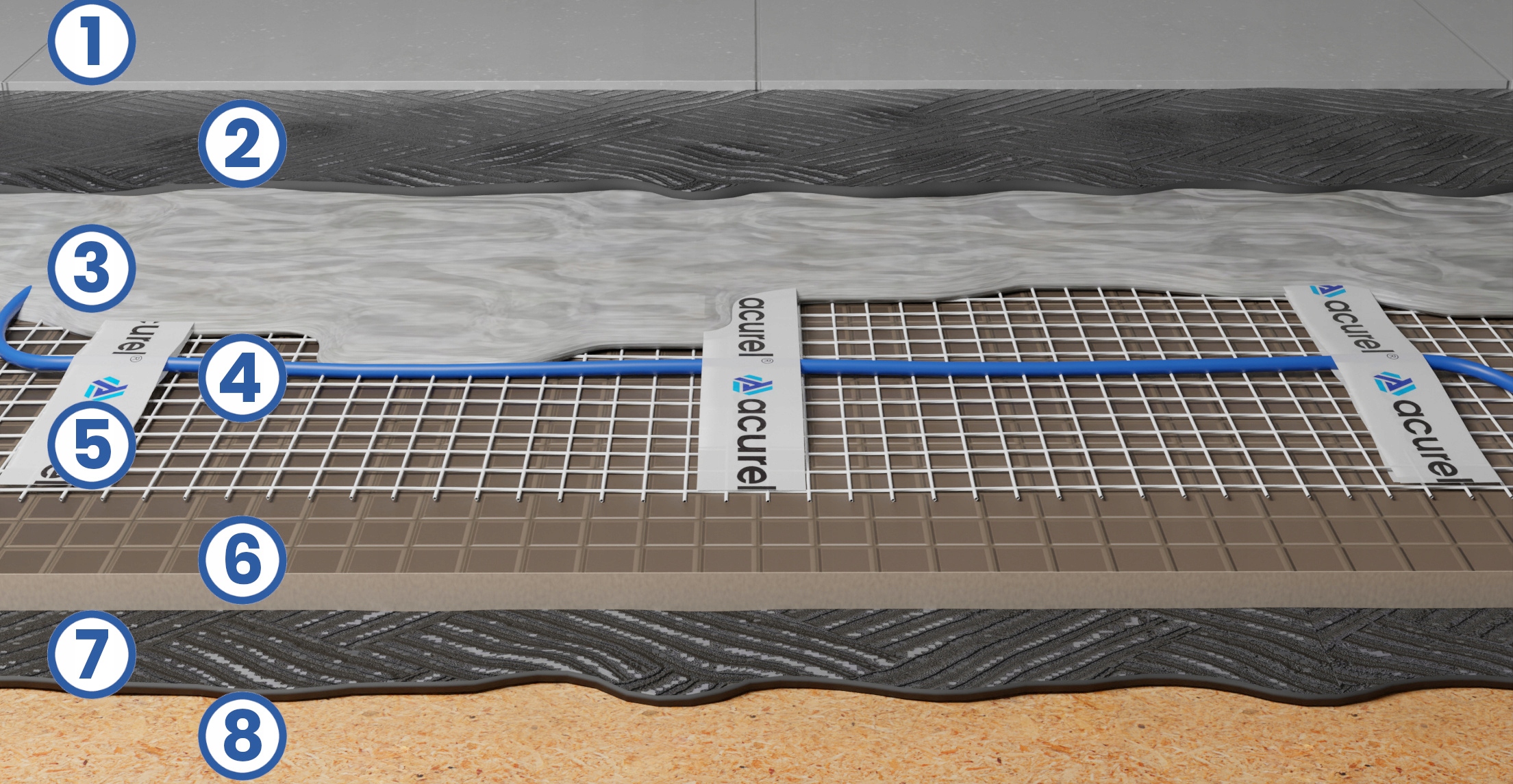 Рада ізоляції терміну ACUREL, виготовлена з екструдованого XPS полістиролу (6 мм), оптимізуючи ефективність нагрівання підлоги.
