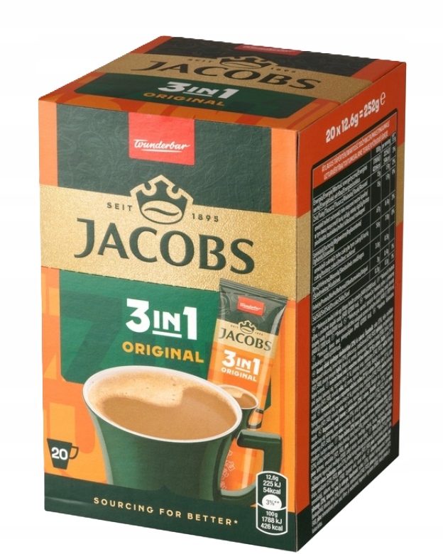 Покупая «JACOBS кофе 3in1 оригинал 20 пакетиков» данный товар из каталога «Кофе в пакетиках» вы можете быть уверены, что после оформления заказа, доставки в Украину, вы получите именно то, что заказывали, в оговоренные сроки и европейского качества.