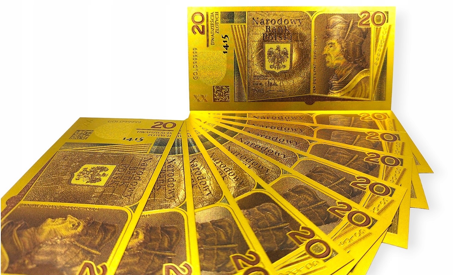 ПОЗОЛОЧЕНА БАНКНОТА НОМІНАЛОМ 20 ЗЛОТІВ ЯНА ДУГОША