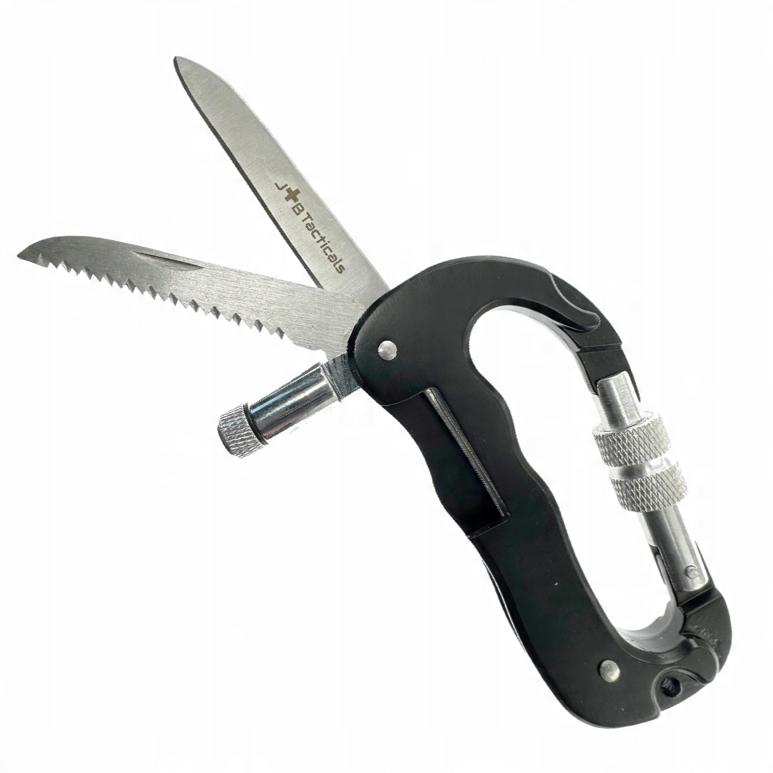 JB Tacticals Карабін з кульковим ножем і ліхтариком МУЛЬТИІНСТРУМЕНТ 5в1 JB-06 BLK