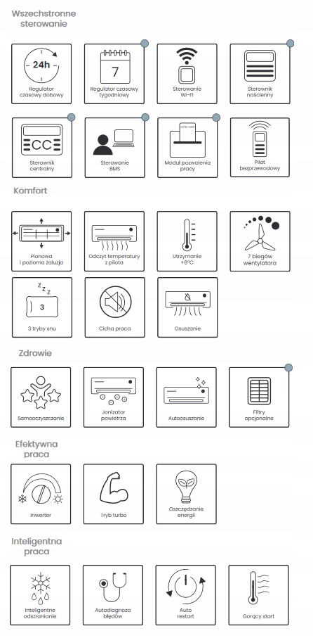 Настінний кондиціонер Gree Pular має функції очищення повітря. У стандартній комплектації він включає іонізатор повітря та нову функцію самоочищення внутрішнього теплообмінника, але також можна використовувати додаткові фільтри для очищення повітря.