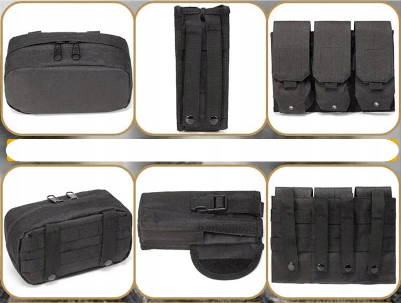 - Універсальність: жилет містить додаткові елементи, такі як підсумки MOLLE, сумісні з різними військовими аксесуарами, мисливським і страйкбольним спорядженням.