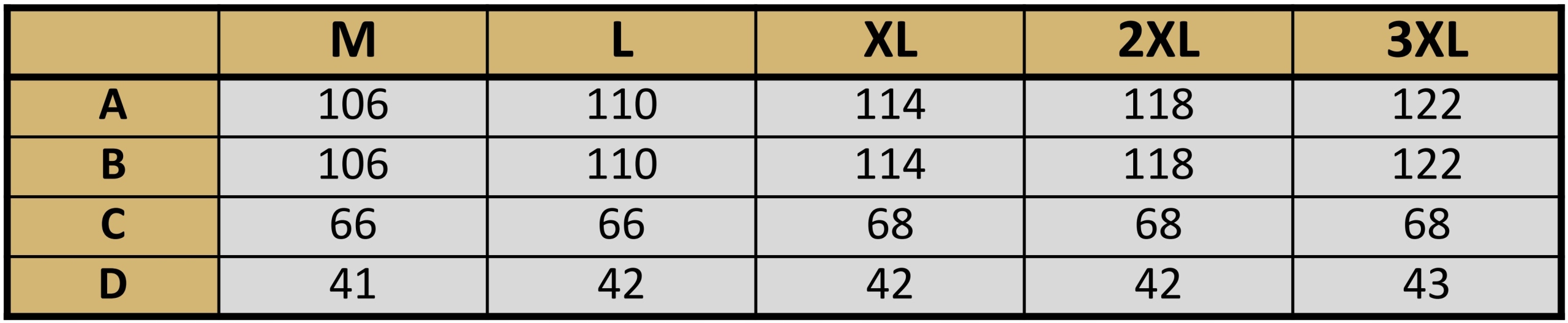 Вироби міряються плазом, назовні, застібаються на гудзики (блискавку). Щоб вибрати найбільш підходящий розмір, виміряйте подібний одяг зі свого гардеробу та порівняйте його розміри з таблицею розмірів даного виробу. Розміри, наведені в таблиці, можуть відрізнятися від фактичних розмірів виробу на +/- 2 см.