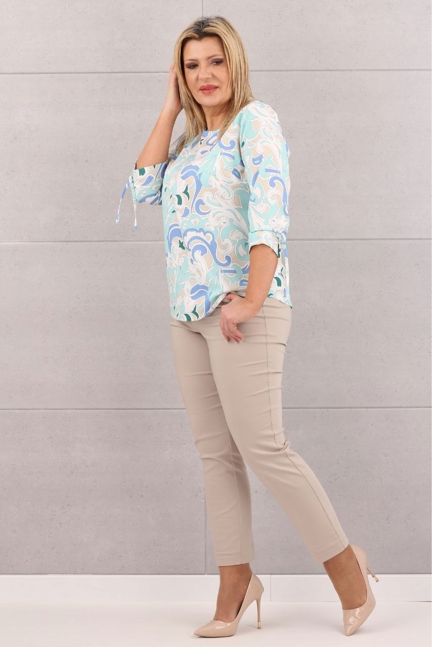 Ця легка елегантна блуза з малюнком не тільки додасть енергії вашому гардеробу, але й підкреслить достоїнства вашої фігури. Розроблений з урахуванням комфорту та стилю, це ідеальний вибір для різноманітних випадків. Виготовлена з ніжної тканини, яка приємна на дотик і гарантує комфорт протягом усього дня. Блуза ідеально сформує вашу фігуру, додасть впевненості в собі та дозволить почуватися особливою на кожному заході.