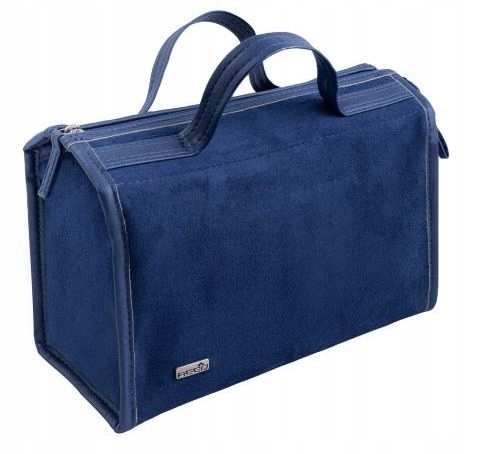 Виготовлений з оксамиту найвищої якості, темно-синій. Косметичка оздоблена строчкою і обробкою з екошкіри такого ж кольору. Внутрішня частина з однією кишенею виконана з підкладки ідеально підібраного темно-синього кольору. Косметичка з одним відділенням, закривається на блискавку з двома замками. Така блискавка дозволяє повністю відкривати косметичку, що підвищує прозорість вмісту косметички. Невеликий елегантний металевий логотип REED на передній частині.