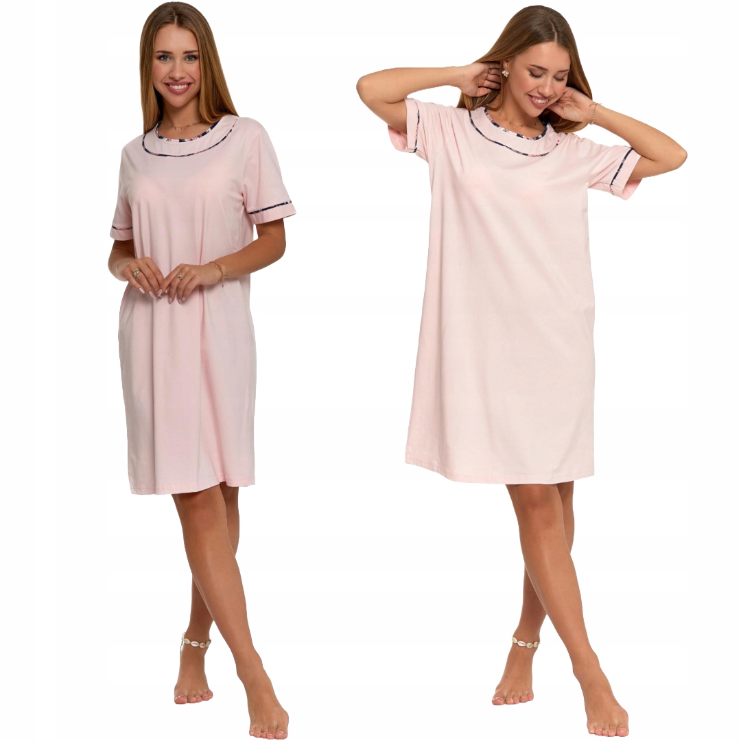 НІЧНА ЖІНОЧА СОРОЧКА БАВОВНЯНА З КОРОТКИМ РУКАВОМ, КОМФОРТНА, РОЖЕВА MORAJ M