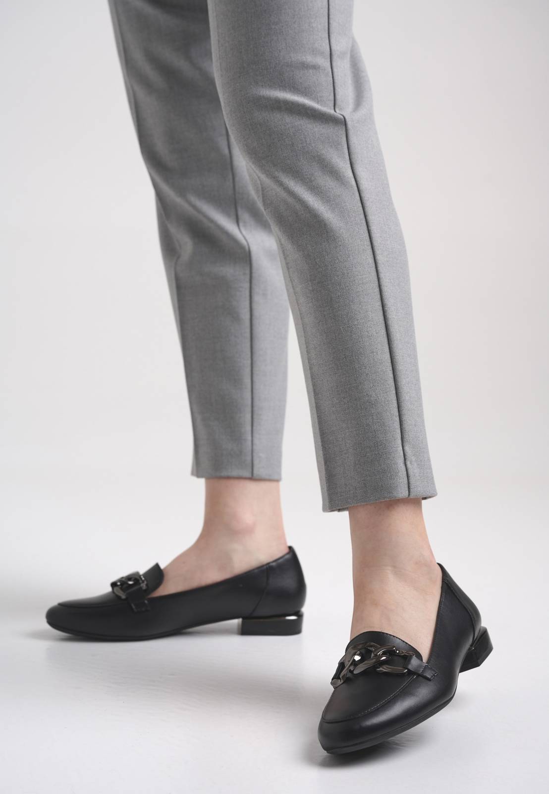 Мокасини Sergio Leone на низькому декоративному каблуці та ланцюжку, чорні MK739