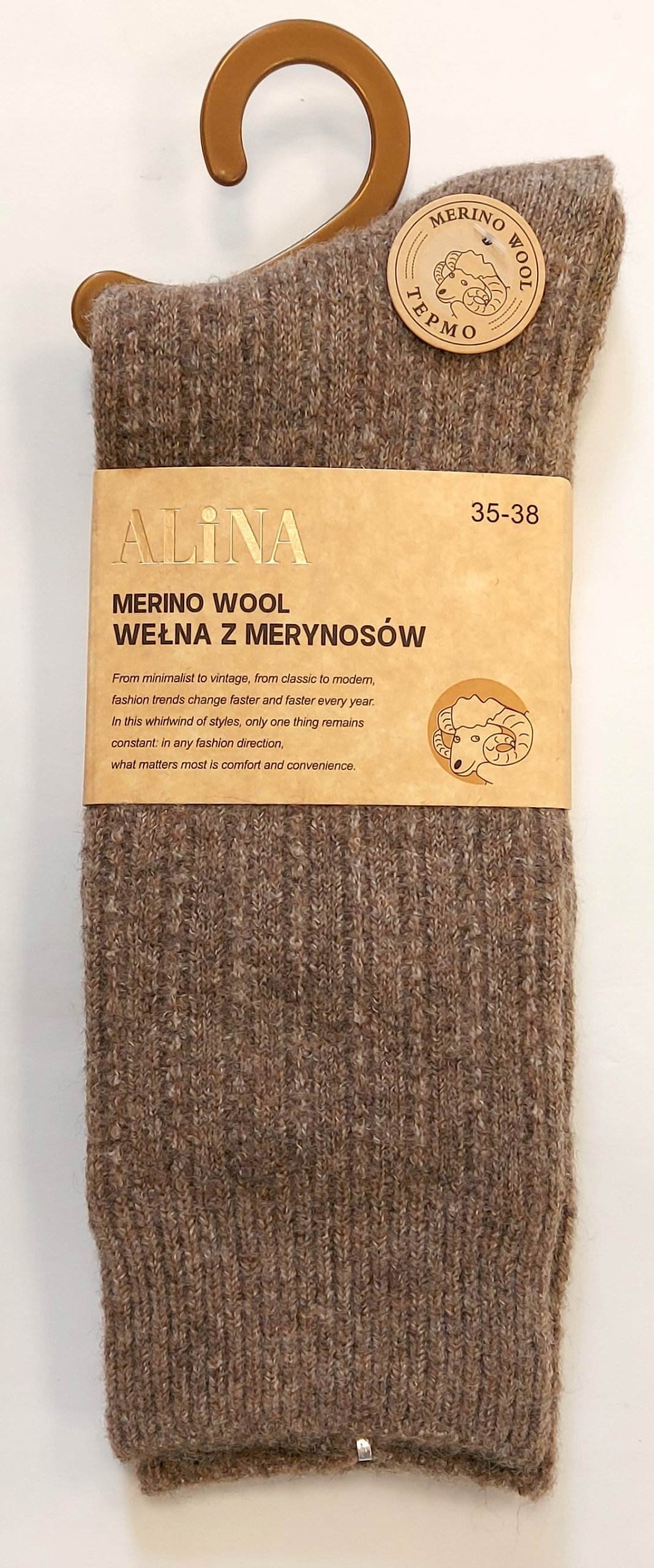 Жіночі теплі шкарпетки Alina Merinos вовна гладка темна бежева 39-42