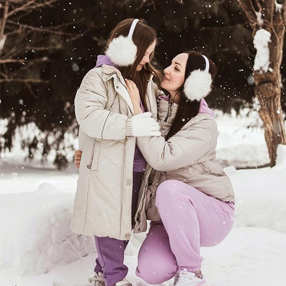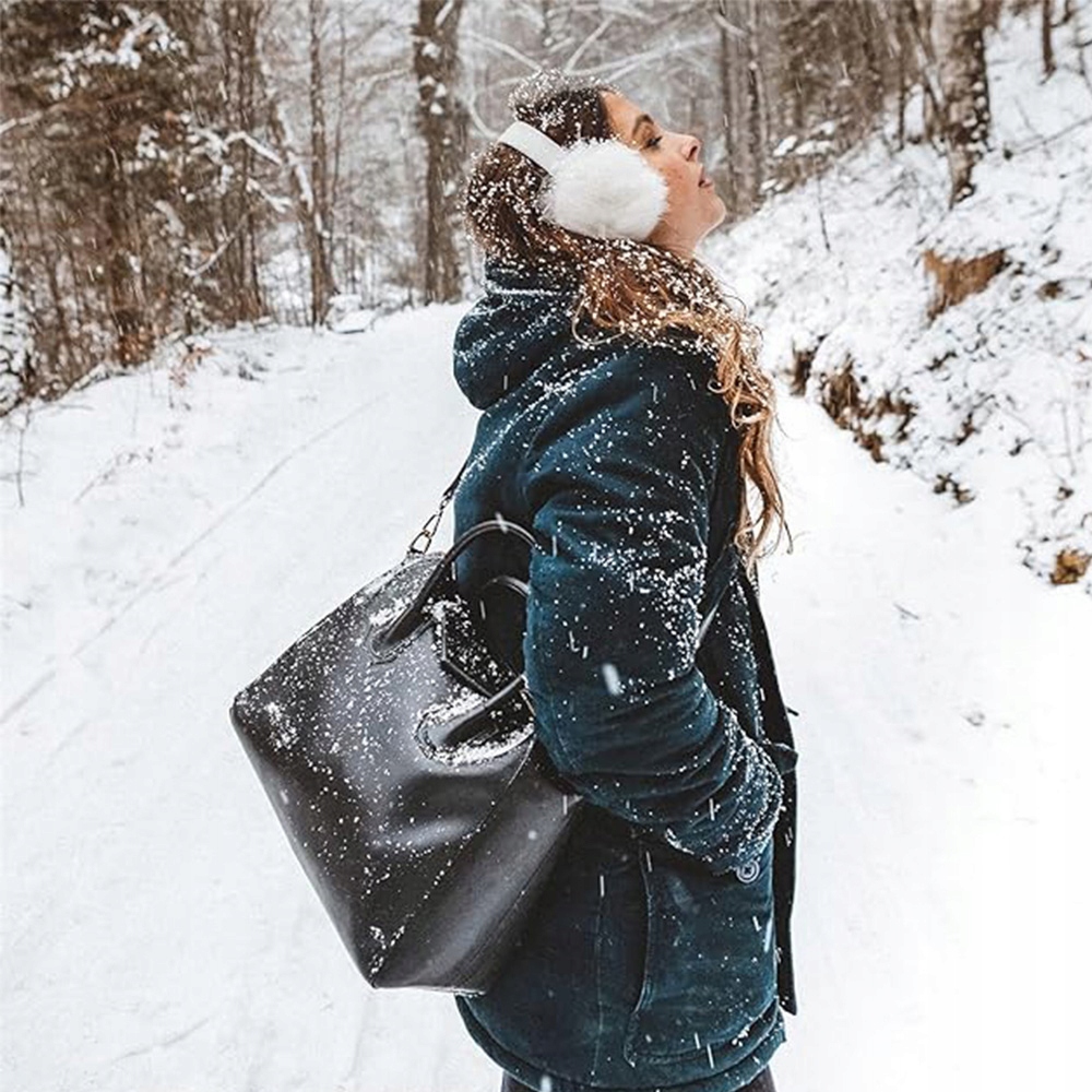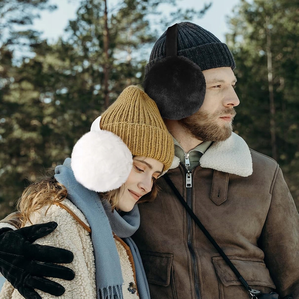 2 штуки навушників, одна біла та одна чорна, надзвичайно м’які та зручні зимові навушники, щоб зігріти вуха в холодні дні. Пухнасті амбушюри – ідеальний зимовий аксесуар.