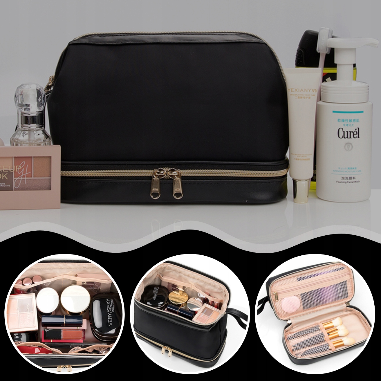 Класник був розроблений для комфорту та зручності. Виготовлений з міцного матеріалу, який є і водонепроникним, і приємним на дотик. Завдяки цьому вам не доведеться турбуватися про затоплення косметолога під час подорожі або перебування у ванній кімнаті. сумочка