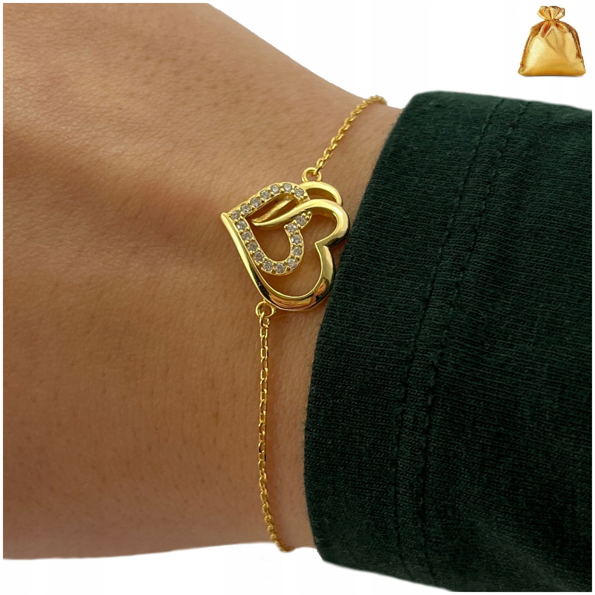 Жіночий браслет із золотого серця з цирконією, 925 срібло, знаменитість