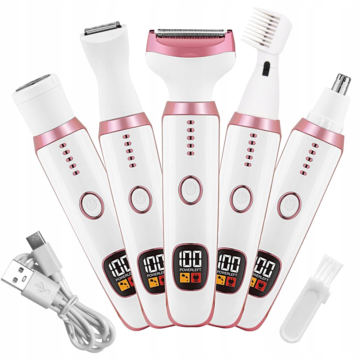 Тример бікіні для жінок 5 в 1, бритва тіла в носі, обличчям, брови, руки, ноги, пахви, інтимні ділянки, змінна машина для гоління для жінок, безболісний подарунок з USB -зарядкою