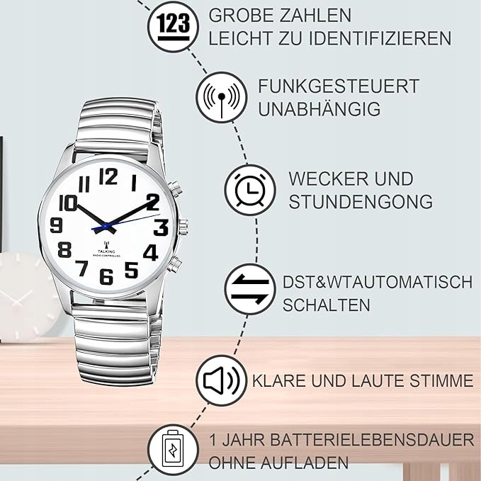 ➡ чітко розмовляє німецькою - одним натисканням ви дізнаєтесь поточний час, дату або встановіть тривогу .