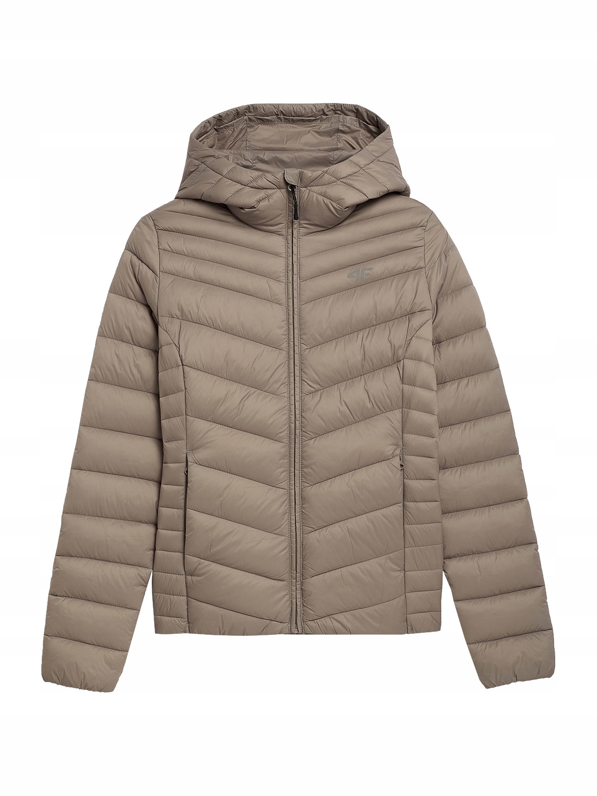 Жіночий пуховик з капюшоном з останньої колекції 4F. Наповнений синтетичним пухом, який забезпечує тепловий комфорт. Зовнішній матеріал має гідрофобне просочення, яке захистить куртку від вологи. Куртка забезпечить оптимальний захист від холоду в перехідний період.