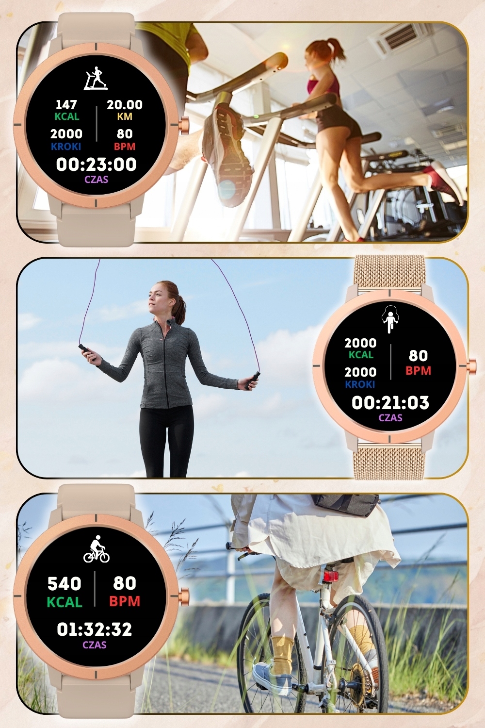 ЖІНОЧИЙ РОЗУМНИЙ ГОДИННИК GPS ПІДКЛЮЧЕННЯ МЕНЮ PL AMOLED GOLDEN SPORT PULSE