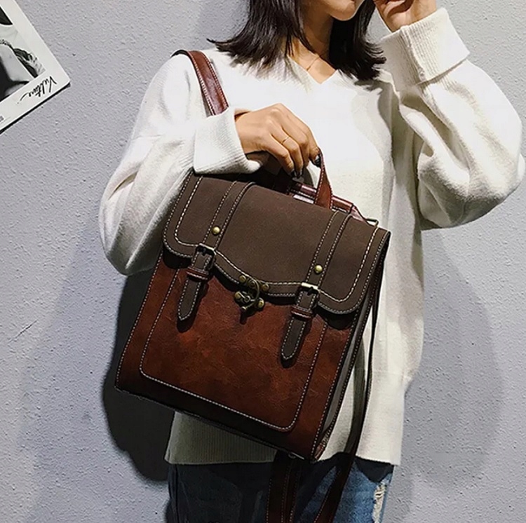 ЖІНОЧИЙ РЮКЗАК ШКІРЯНИЙ ВІНТАЖНИЙ ШКІЛЬНИЙ 2В1 ТЕМНО-КОРИЧНЕВИЙ