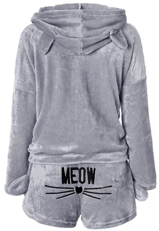 ✅ ЗОВНІШНИЙ ВИГЛЯД - Піжама сірого кольору з милим на капюшоні котячі вушка.і шорти,ззаду на шортах морда кота і напис МЯУ