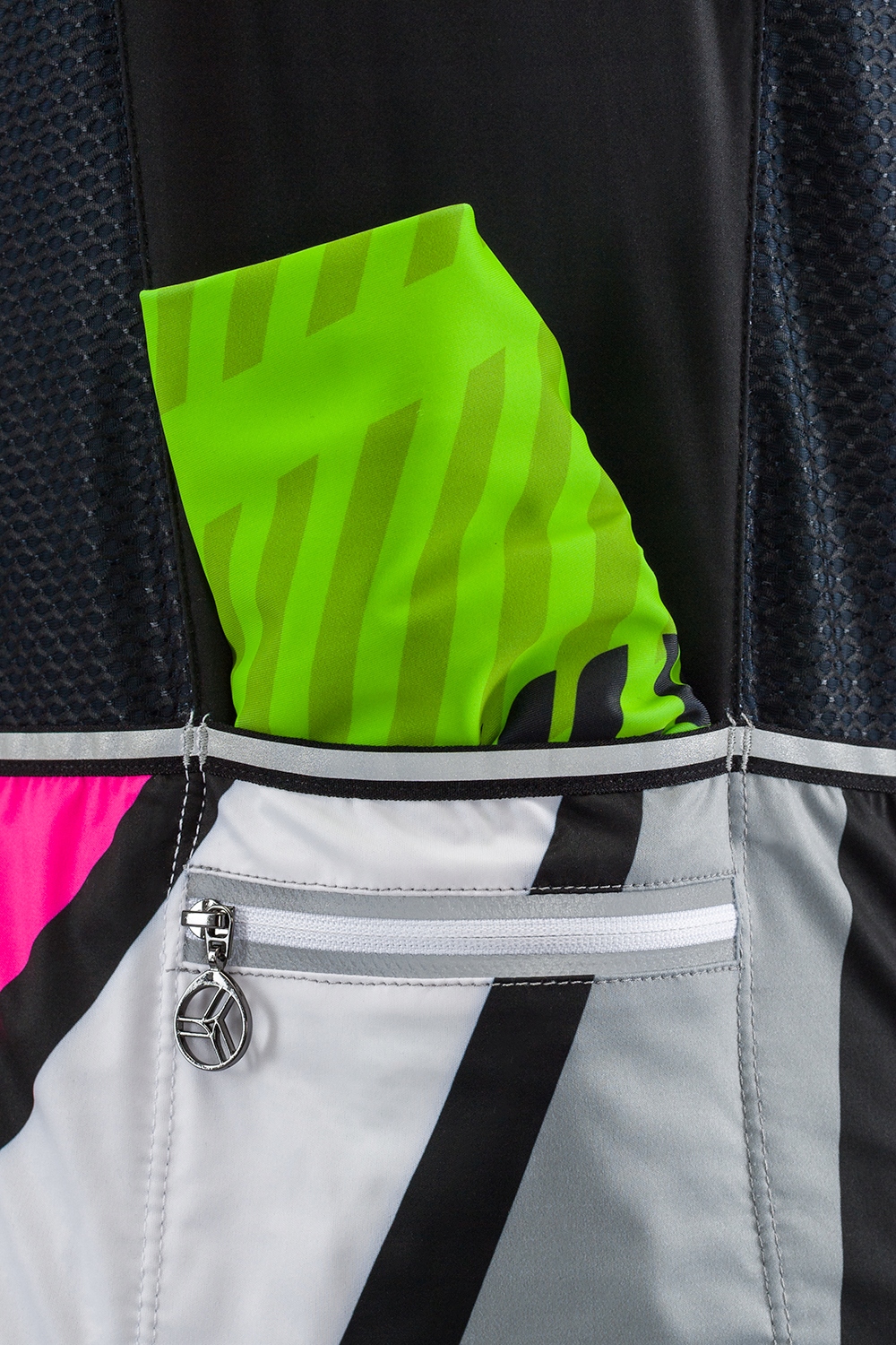 Жіноча велосипедна жилетка з колекції Team. Приталений жилет виготовлений з гнучкого тонкого матеріалу софтшелл із водонепроникною, дихаючою водонепроникною мембраною, яка стійка до вітру та дощу. Жилетка має довгу блискавку спереду, тому її легко одягати, а в разі високих температур легко і повністю розстібається навіть під час катання. На подовженій спинці є дві панелі: повністю дихаюча, з тонкого матеріалу, для кращої вентиляції; під ними є кілька кишень для дрібних і великих речей - класична потрійна кишеня для аксесуарів і одна менша кишеня на блискавці, де можна зберігати найважливіші речі. Кишені легко доступні під час їзди на велосипеді. Наші жилети оснащені світловідбиваючими елементами, які підвищують безпеку в умовах поганої видимості. Щоб жилет добре сидів на тілі і не доводилося поправляти під час катання, він оснащений силіконовою стрічкою проти ковзання. Друк виконано за технологією сублімації, що робить його стійким до механічних та хімічних пошкоджень.