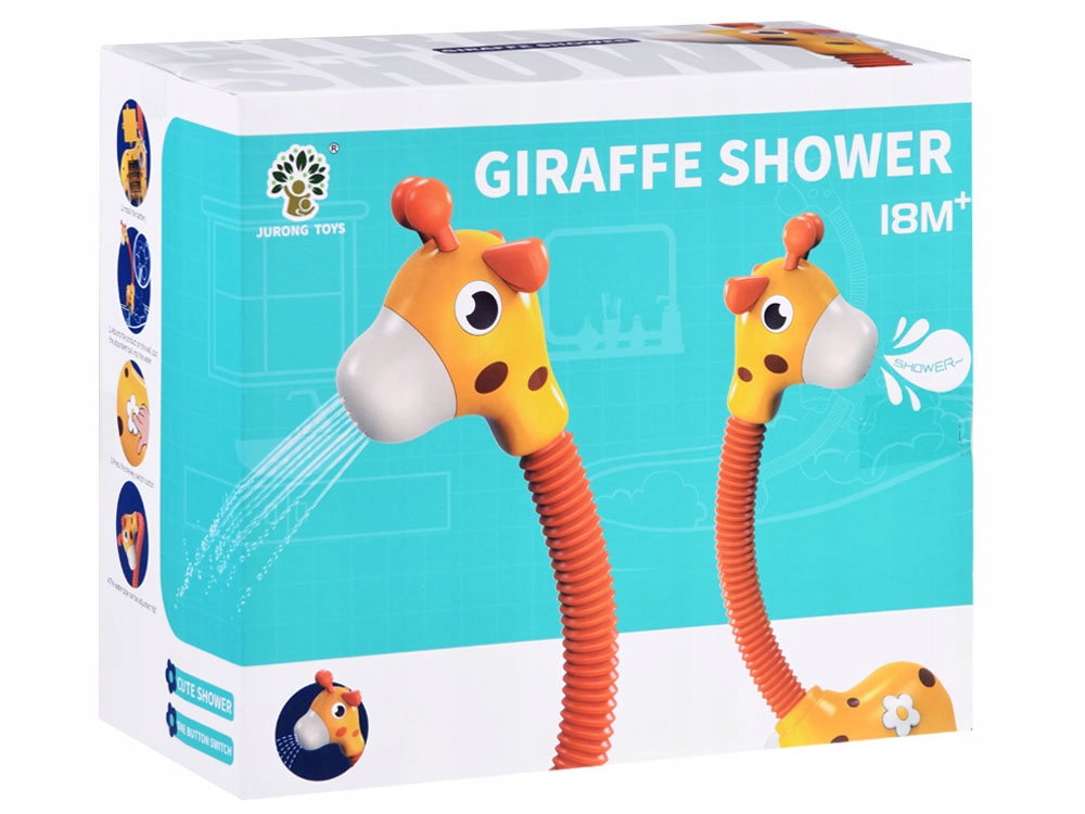Іграшка призначена для ігор у воді під час вечірнього купання, гри в басейні або дитячому басейні. Набір оснащений присосками, завдяки яким ми можемо легко прикріпити жирафа до плитки у ванній кімнаті, на ванну, душовий піддон або інше місце, зручне для дитини.