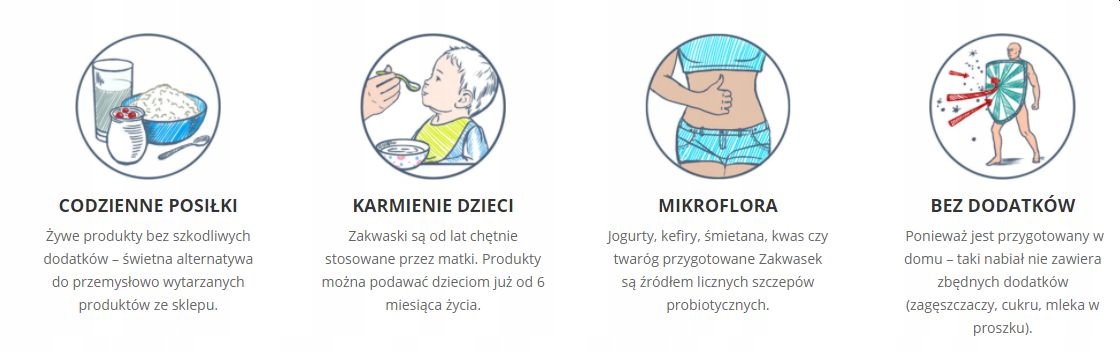 - Закваски, завдяки вмісту живих бактеріальних культур, підтримують мікрофлору кишечника, так важливу для імунітету організму. Ці культури разом з молочною кислотою, що утворюється під час скисання молока, при щоденному споживанні негативно впливають на хвороботворні бактерії та грибки.