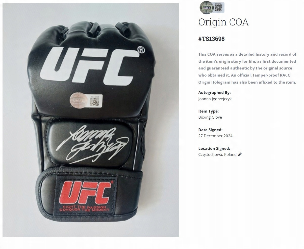 Joanna jędrzejczyk рукавичка ufc mma оригінальний ksw autograph + сертифікат