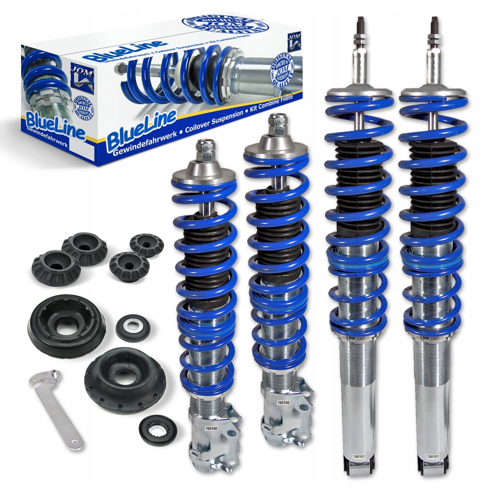Комплекти підвіски BlueLine Coilover — це компоненти високоякісної підвіски для автомобілів із заниженою передньою віссю 40–65 мм і 40–65 мм із задньою віссю. Діапазон регулювання дозволяє опускати автомобіль індивідуально. Набори мають величезне поглинання бокової сили. Початковий натяг пружини зберігається протягом усього діапазону регулювання. Коригування після встановлення.