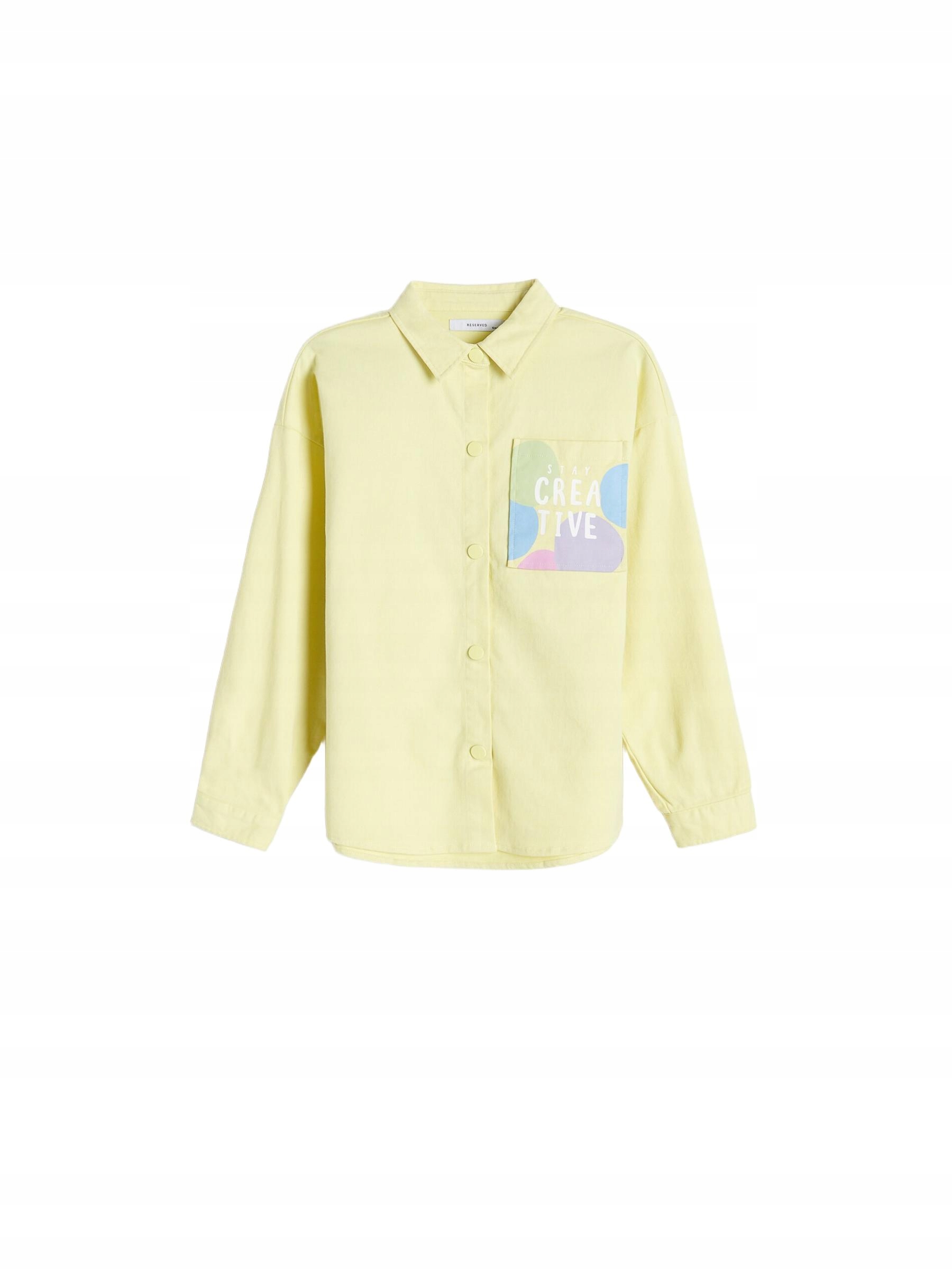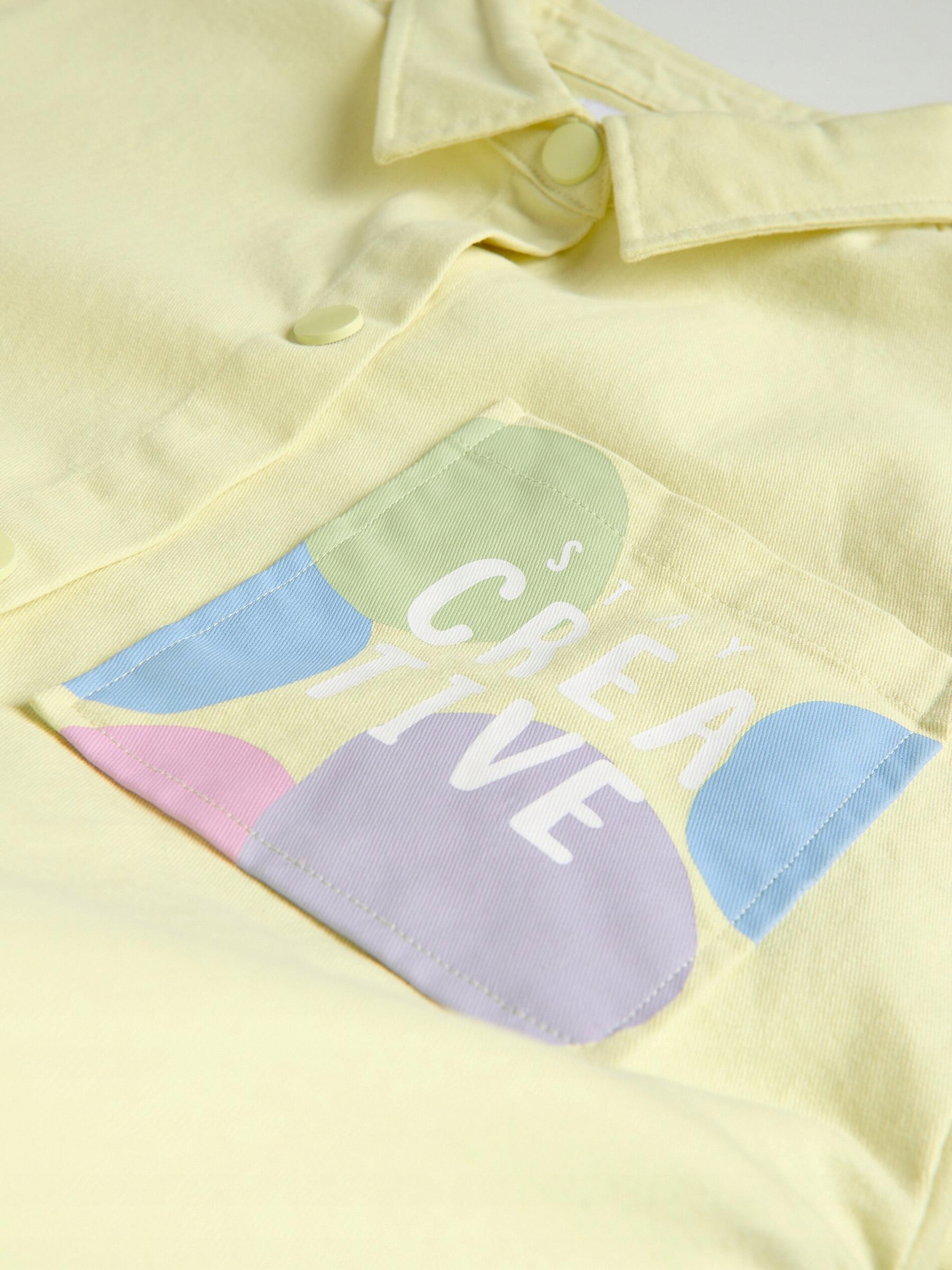 ЖОВТА ОДНОТОННА БАВОВНЯНА СОРОЧКА З ДОВГИМ РУКАВОМ З ПРИНТАМИ, КОЛЬОРОВИЙ ПРИНТ 134