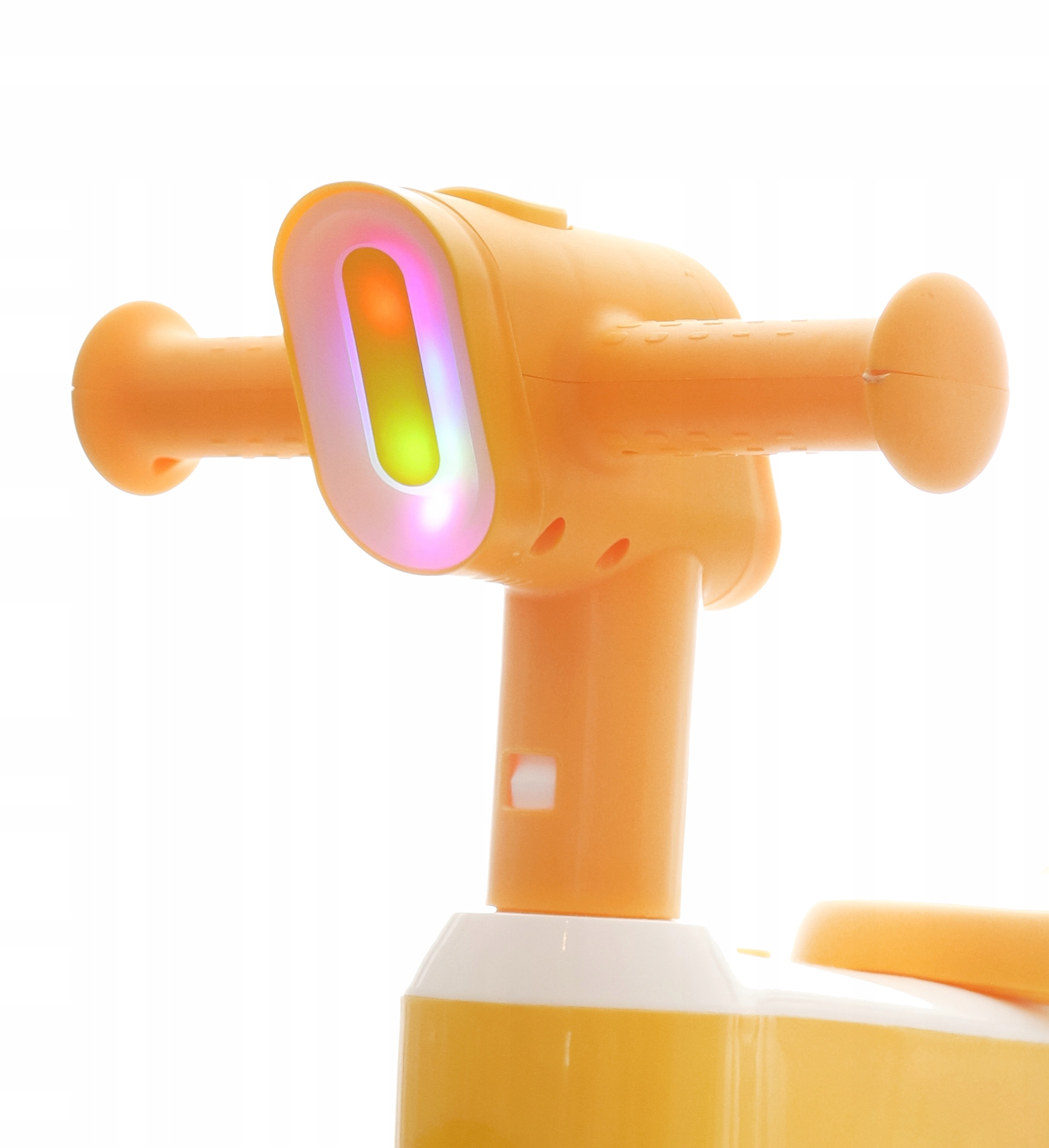 Чотириколісний велосипед Lumina-11 жовтого кольору оснащений багатьма цікавими функціями, які неодмінно сподобаються кожній дитині. Різнокольоровий передній ліхтар зробить водіння ще приємнішим, а функція мильних бульбашок неодмінно порадує кожну дитину. Крім того, у велосипеді є вбудований динамік, тому під час катання дитина зможе слухати музику, яка зберігається в пам'яті велосипеда. Чудове задоволення також доповнить гудок з приємним тонким звуковим сигналом.