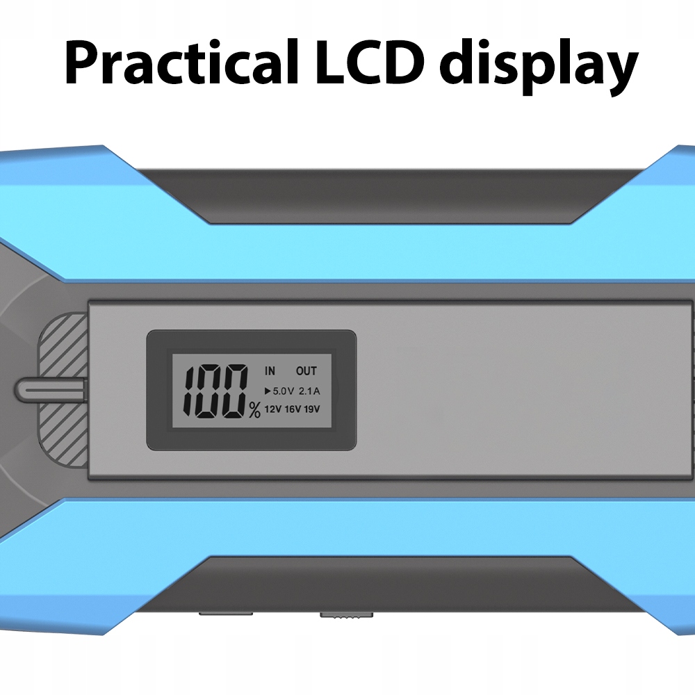 Акумуляторний стартер із цифровим РК-дисплеєм, що забезпечує чітке уявлення про стан використання автомобільного стартера та рівень заряду, що залишився; Формований прогумований корпус міцний і забезпечує (IP65) водонепроникність, захист від пилу та ударів для використання поза приміщенням.