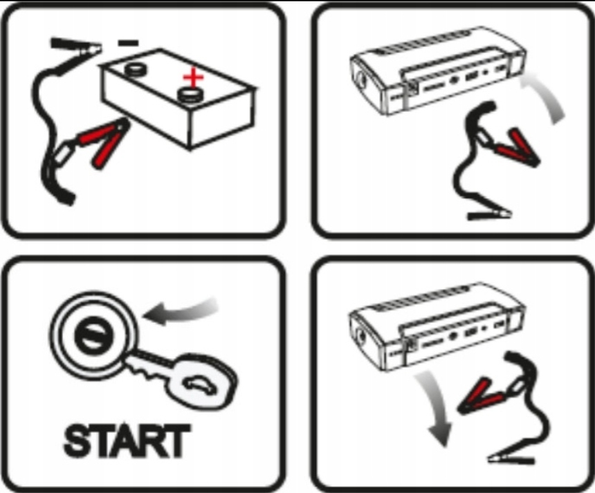 Пристрій розроблено таким чином, що кожен користувач може ним керувати. Щоб завести автомобіль, просто під’єднайте позитивний та негативний кабелі до позитивного та негативного полюсів акумулятора. Потім підключіть інший кінець кабелю-перемички до входу пристрою. Поверніть ключ у замку запалювання автомобіля. Після запуску автомобіля зніміть клеми акумулятора.