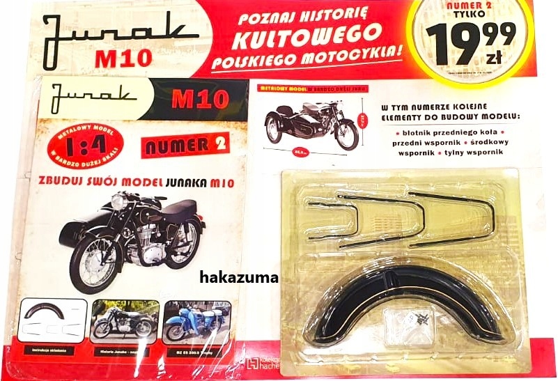 Колекція JUNAK M10 дозволить вам створити модель цього легендарного мотоцикла під назвою «Польський Харлей». Він випускався до середини 1965 року. У повній версії M10 він виглядав дуже привабливо і гідно. Солідний мотоцикл з унікальним звуком був і залишається мрією багатьох польських мотоциклістів. Кожен буклет містить докладну інструкцію зі складання, яка точно і зрозуміло описує, як зібрати Junak M10. Крім того, кожен випуск міститиме цінні статті, які розповідатимуть про захоплюючий світ та історію мотоциклів.