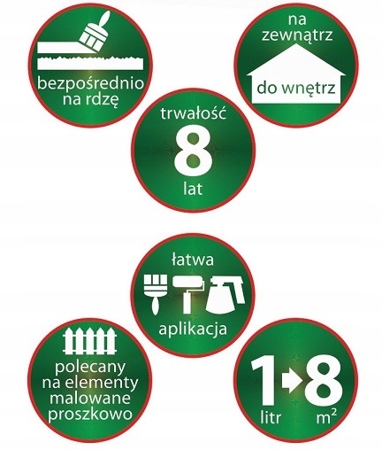 Забезпечує тривалий антикорозійний захист протягом щонайменше 8 років. Його можна використовувати для першого фарбування та ремонтного фарбування. Для зовнішнього і внутрішнього застосування. Стійкий до ультрафіолету.
