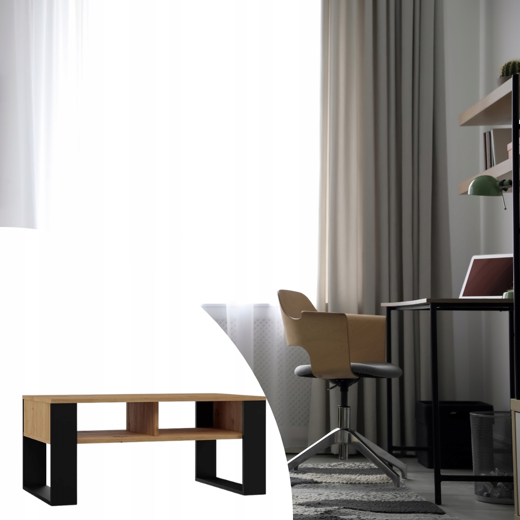 Журнальний столик з полицею сучасної прямокутної лавки Loft Oak Artisan Black
