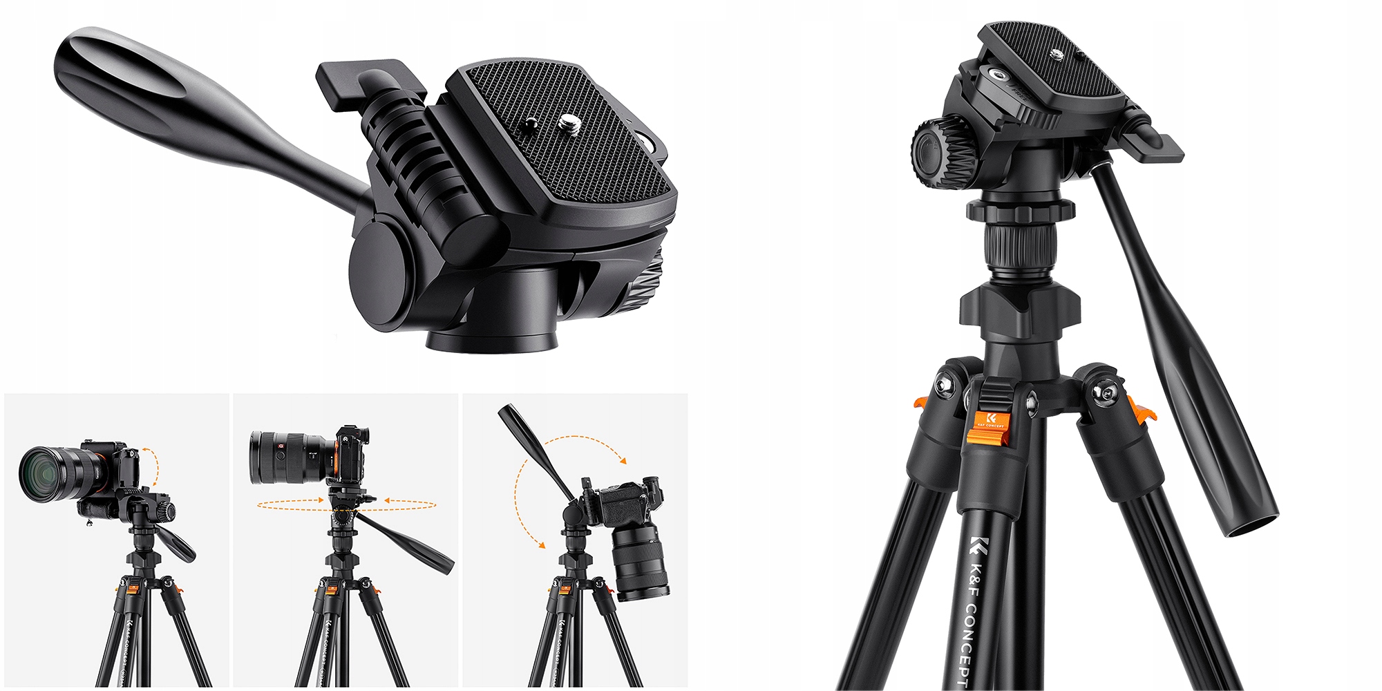 video tripod k & f концепція k-серії k234a0 забезпечує оптимальну плинність та точність рухів під час зйомок. Використовувана голова пропонує дві робочі осей - схильність та панорама - з незалежними замками позиції. Вони дозволяють усунути випадкові рухи, забезпечуючи стабільність у кожному пострілі. Завдяки спеціальній ручці ви можете точно керувати роботою камери або камери. Крім того, нахилений модуль дозволяє миттєву адаптацію камери до вертикальної орієнтації, забезпечуючи ще більшу гнучкість.