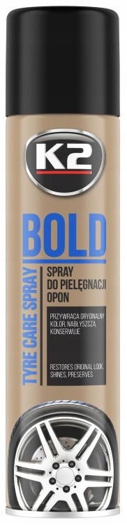 K2 Bold tire shine — це швидкий і простий у використанні засіб, призначений для блиску та догляду за шинами. Відновлює первісний вигляд, надає блискучий блиск і глибокий чорний колір. Захищає від УФ-променів, розтріскування та матування. Завдяки своїм гідрофобним властивостям обмежує відкладення бруду. Його також можна використовувати для блиску та підтримки інших гумових і пластикових поверхонь.