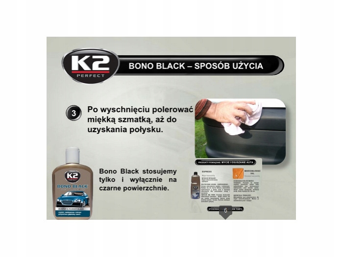 K2 Bono Black - це відмінний продукт для регенерації всіх чорних пластикових елементів тіла, а також шин та ущільнювачів.