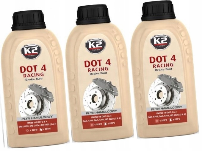 Ця особливість гальмівної рідини DOT 4 RACING дозволяє використовувати її в професійних гальмівних системах, популярних у автоспорті, де гальма постійно працюють у верхньому діапазоні температур. Гальмівна рідина K2 DOT 4 RACING дуже стійка до поглинання води.