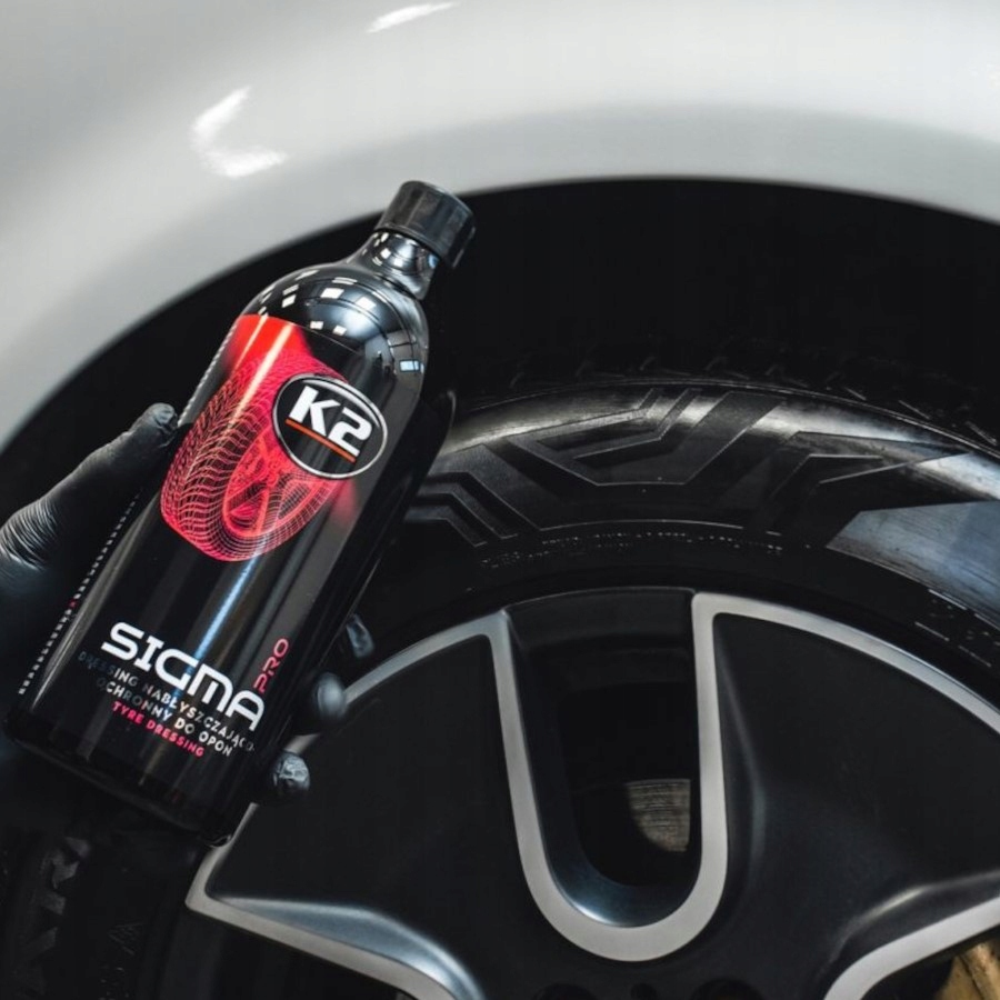 k2 Sigma Pro -професіонал блискучий заправка, , призначений для надання шинам ефекту глибокого мокрого блиску, , який підкреслює їх естетику. Формула створює на поверхні легку захисну плівку, , яка захищає від розтріскування, згасання та відкладення бруду. Продукт простий у використанні - просто розпилюйте шину і рівномірно розподіліть на аплікатор, щоб отримати вражаючий ефект. Це ідеальне рішення для тих, хто цінує елегантний зовнішній вигляд коліс та тривалий захист без зайвого жиру.