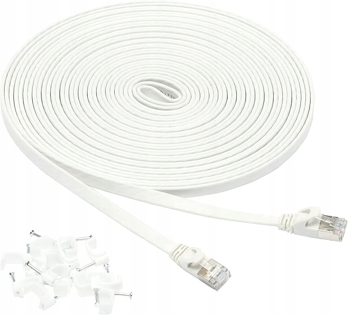 - Плоский кабель Cat-7 STP (екранована вита пара) Ethernet для підключення мережевих пристроїв, таких як комп’ютери, принтери, маршрутизатори тощо.
