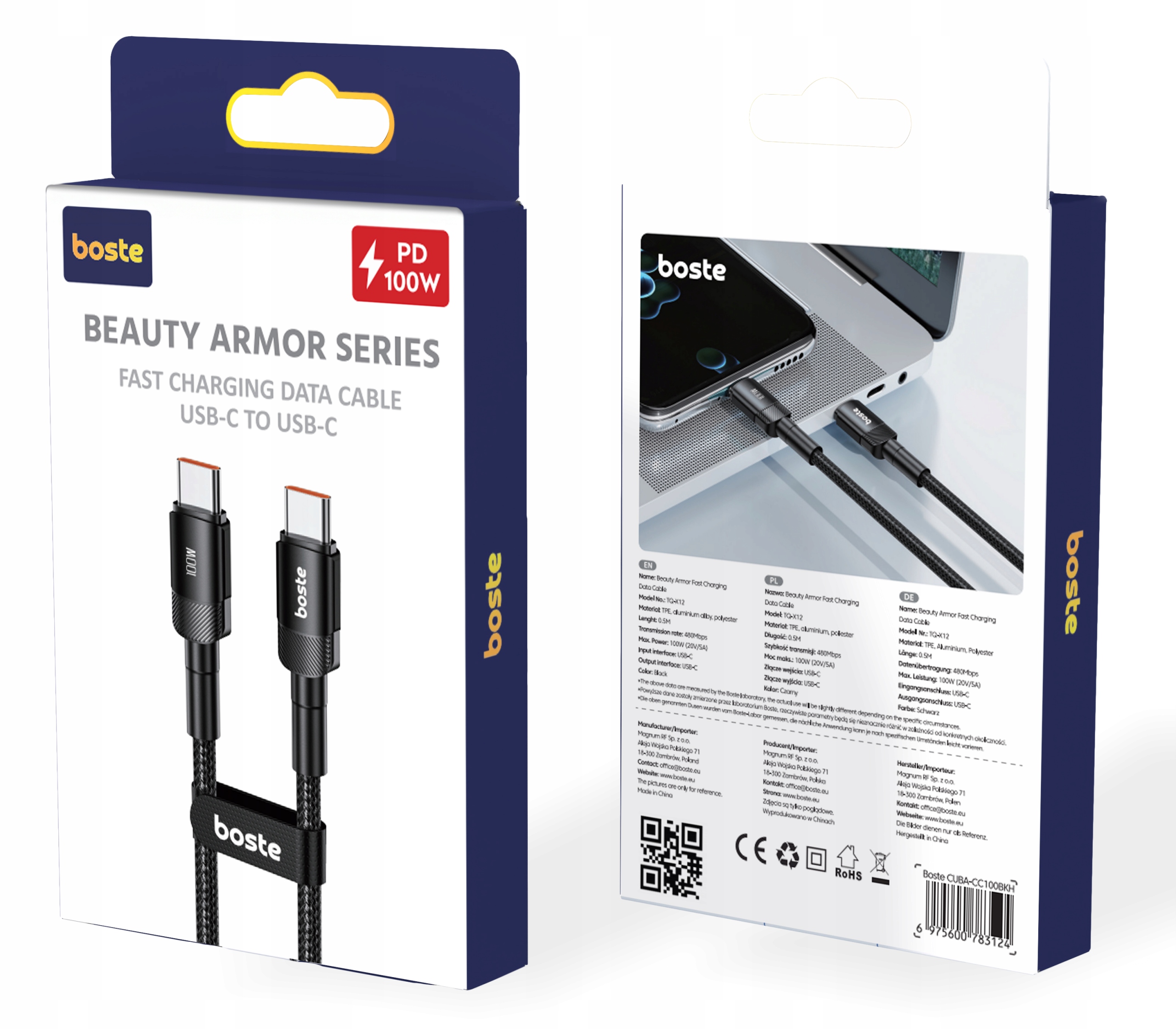 BOSTE КАБЕЛЬ USB-C TYPE-C 100W FAST CHARGING PD QC 4.0 POWERFUL 1M