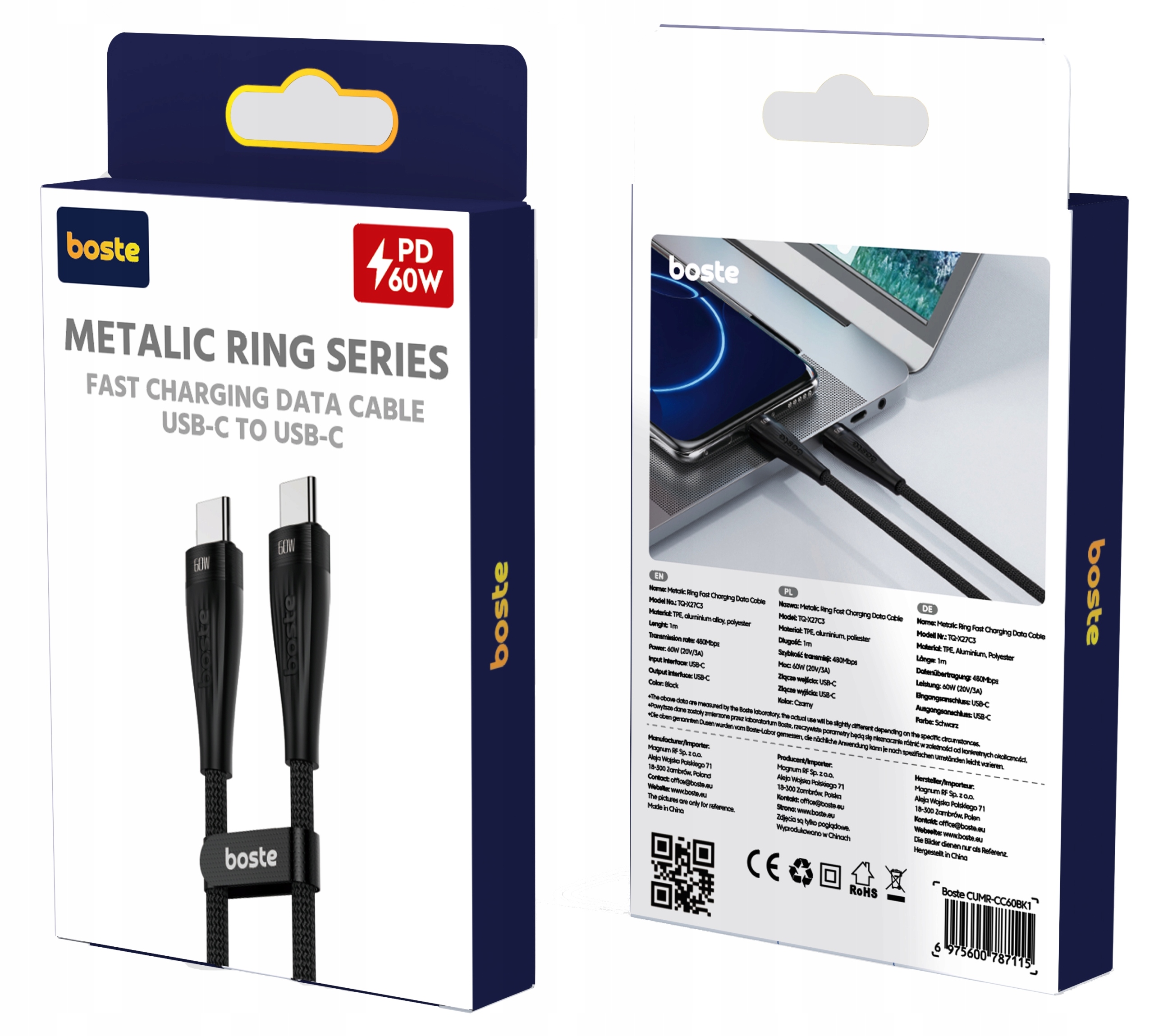BOSTE КАБЕЛЬ USB-C TYPE-C 60W FAST CHARGING PD QC 4.0 POWERFUL 1M