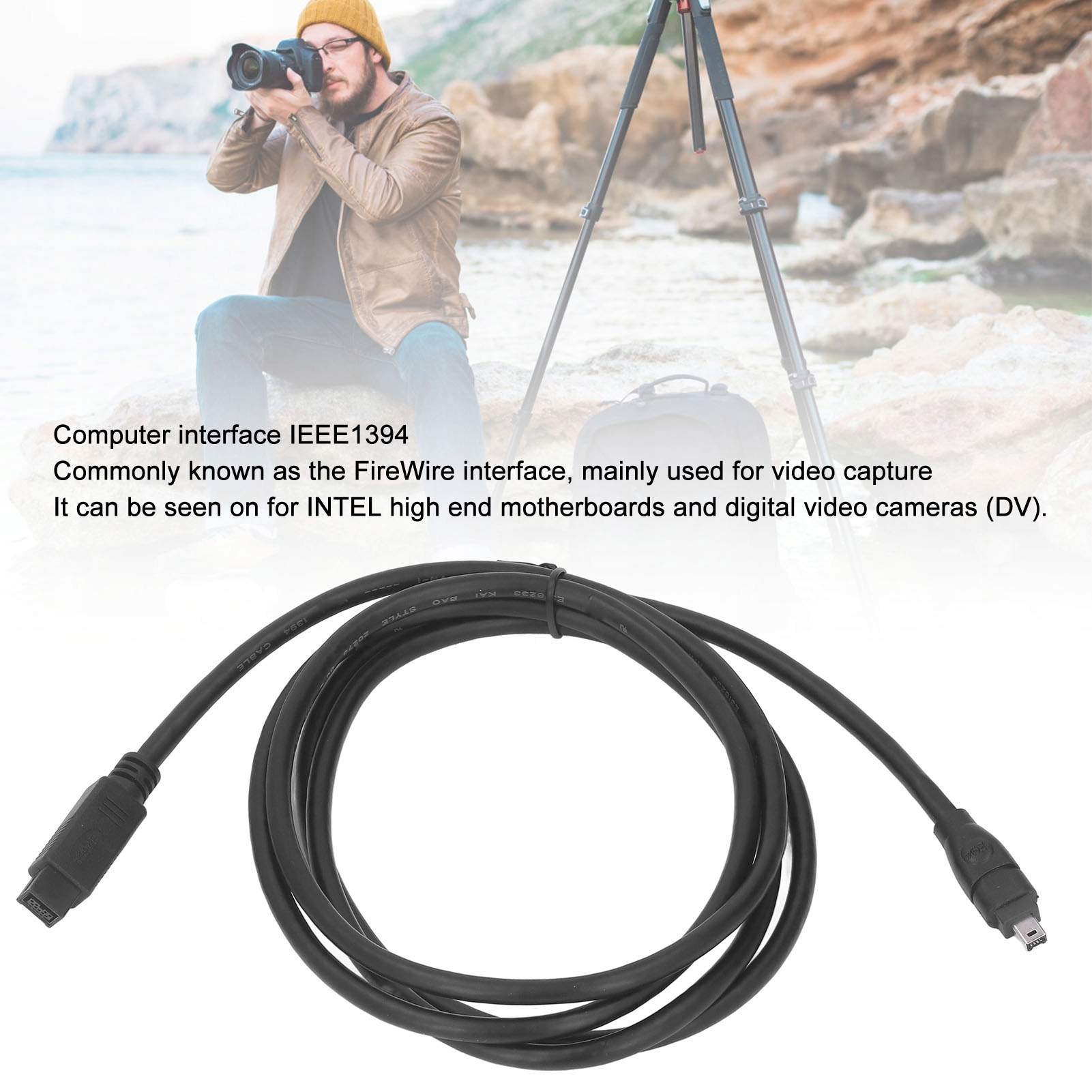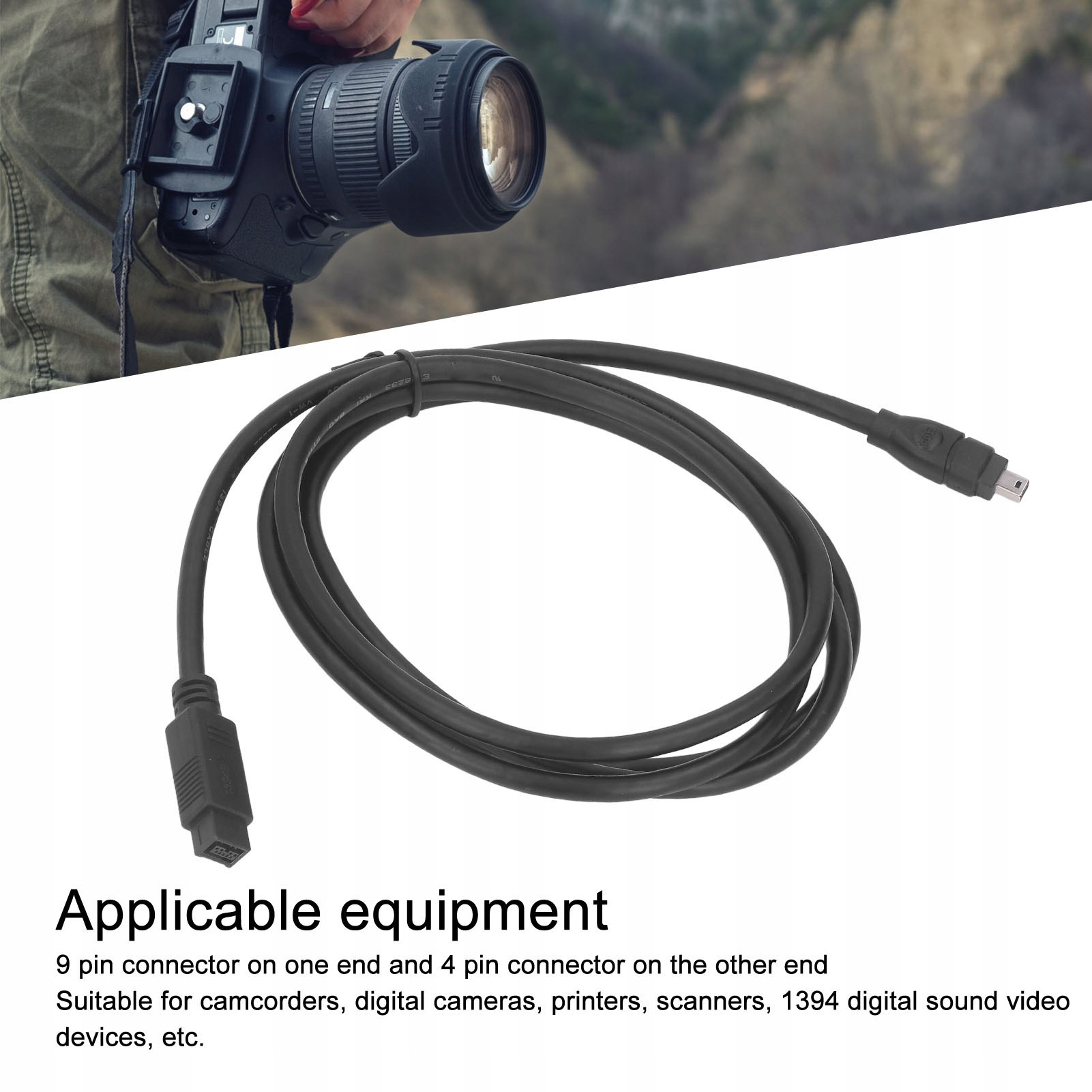 4. Відповідне обладнання: Кабель IEEE1394 Firewire має 9-контактний роз’єм на одному кінці та 4-контактний роз’єм на іншому. Ідеально підходить для відеокамер, цифрових камер, принтерів, сканерів, цифрового аудіо-відео обладнання 1394 тощо.