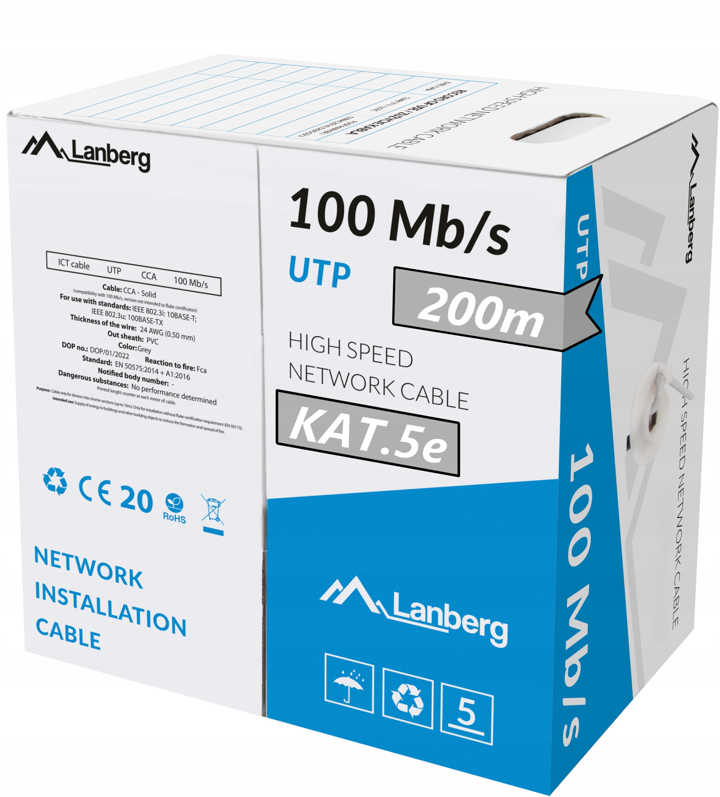 КАБЕЛЬ МЕРЕЖЕВИЙ КАБЕЛЬ ВИТА ПАРА RJ45 UTP CAT.5E CAT.5E 200M LANBERG
