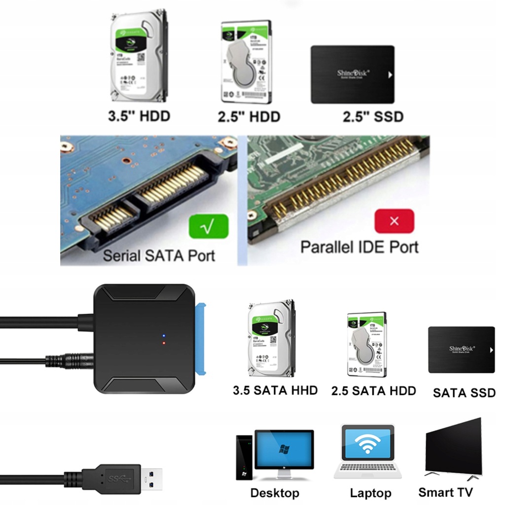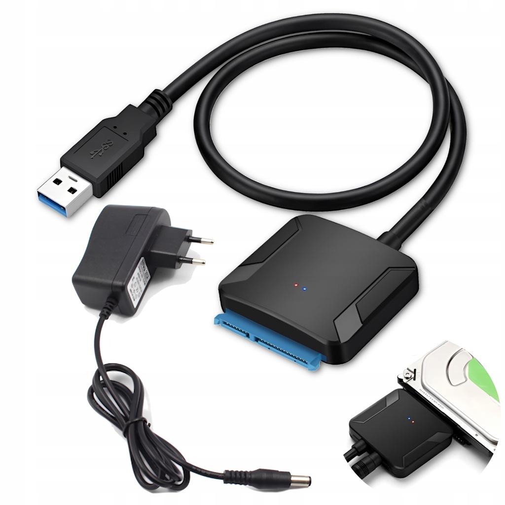 КАБЕЛЬ-ПЕРЕХОДНИК КАБЕЛЬ USB 3.0 - SATA HDD SSD 2.5'' 3.5'' + БЛОК ЖИВЛЕННЯ