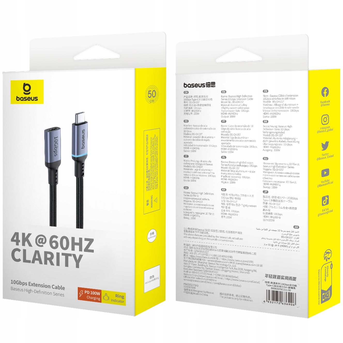 - Модель: подовжувач Baseus High Definition Series 10Gbps Extension Cable 0,5m Cluster Black
