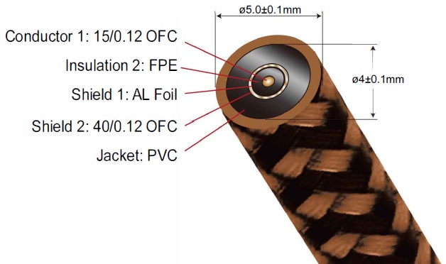 - Поперечний переріз провідника: оплетка 15x0,12 мм OFC мідь