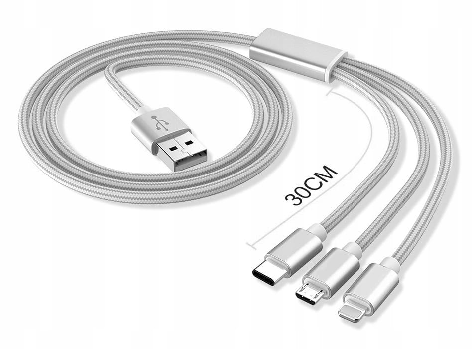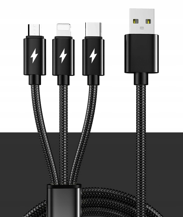 ТЕЛЕФОННИЙ КАБЕЛЬ 3 в 1 MICRO USB USB-C Lightning 120 см