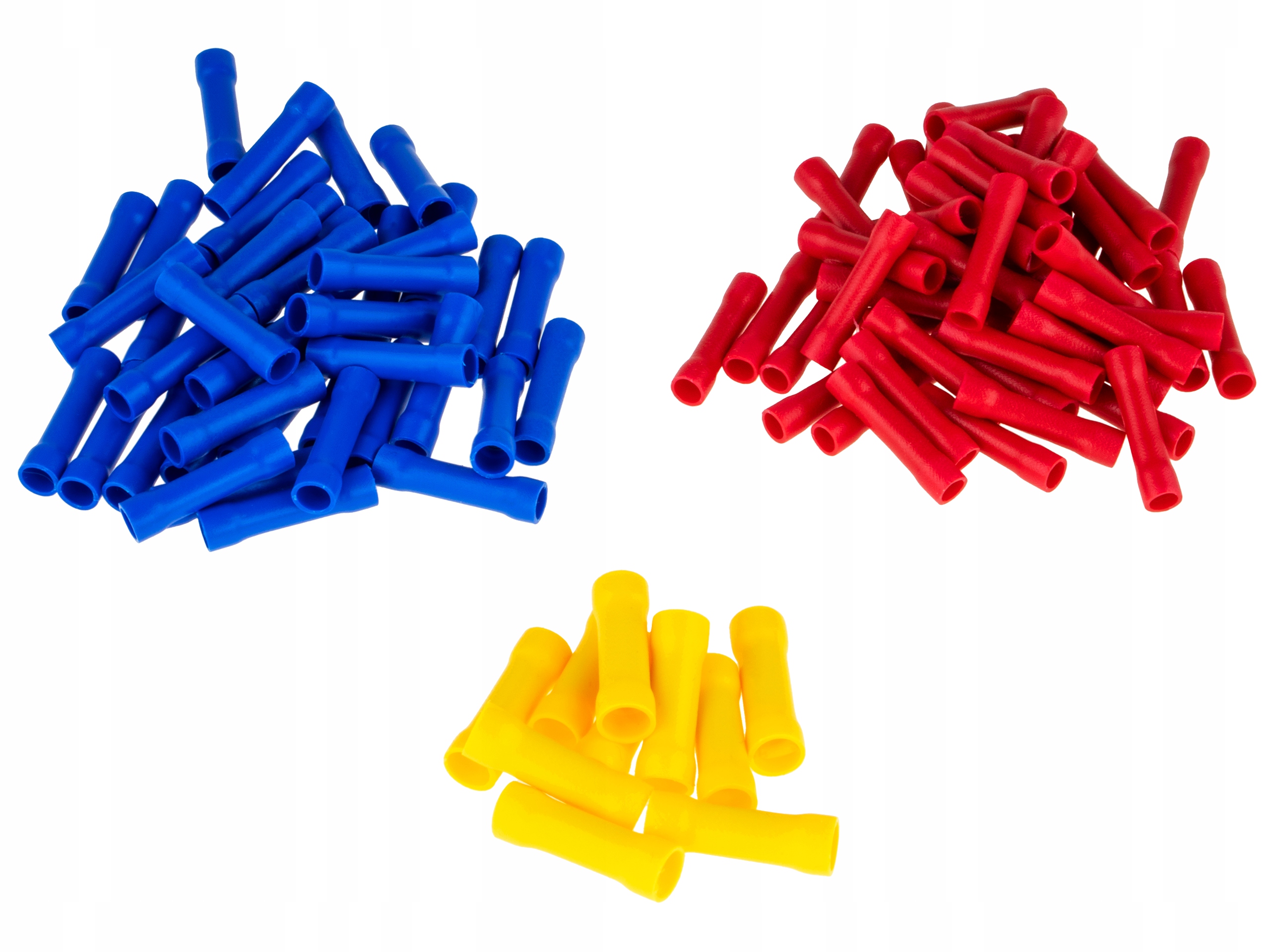 Набір - набір із 100 якісних ізольованих конекторів для з'єднання ізольованих кінців проводів. Правильно обтиснуті з’єднувачі забезпечують належний контакт з’єднаних проводів. Вони забезпечують стабільність вібраційних з'єднань і знижують ймовірність короткого замикання. З’єднання здійснюється шляхом обтиску кабельного наконечника на дроті за допомогою преса.